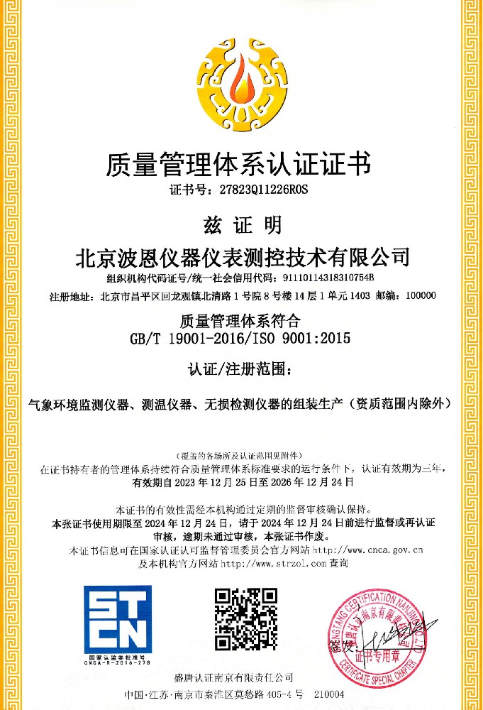 波恩儀器二氧化氮NO2變送器校準(zhǔn)證書