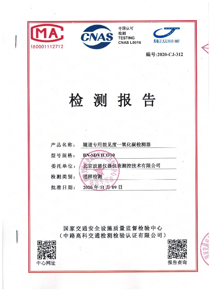國家交通設(shè)施安全檢測中心隧道能見度一氧化碳VICO檢測器檢測報告