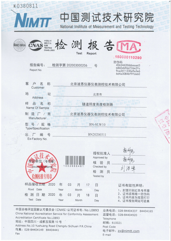 波恩儀器隧道亮度檢測(cè)器檢測(cè)報(bào)告