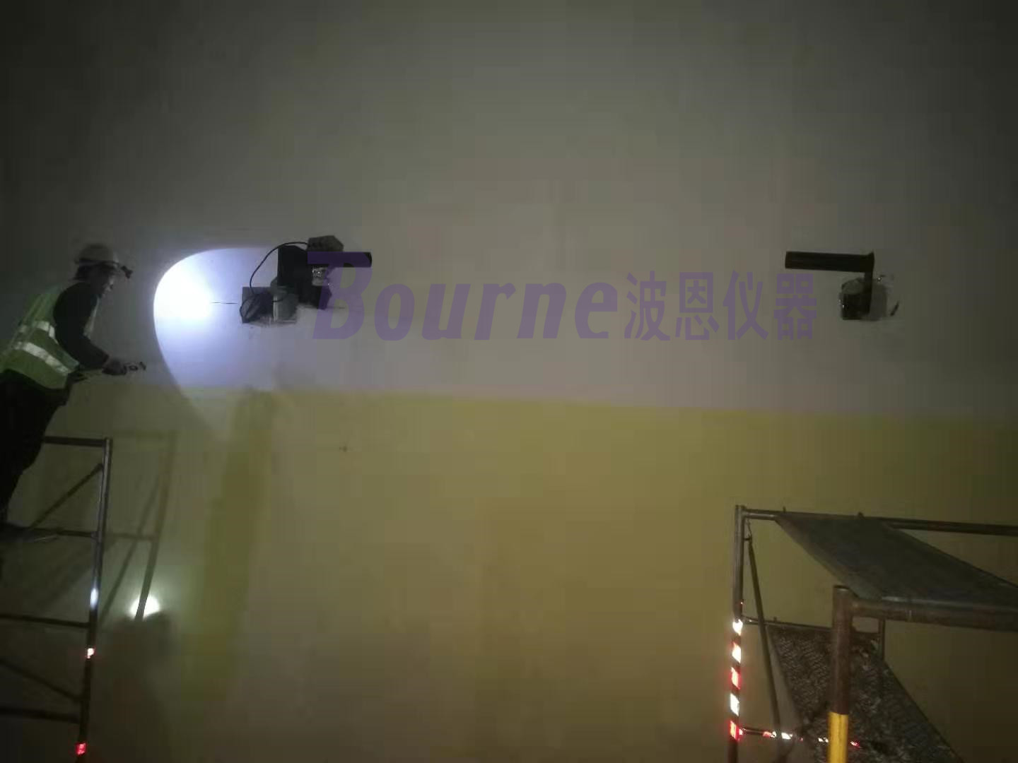 波恩儀器公司制造的BN-SDCOVI10系列檢測儀根據(jù)透射原理工作,發(fā)射/接收器和反射器相對安裝,利用支架固定對準(zhǔn)后,光學(xué)部件發(fā)出的高聚焦光束成為一條檢測光束,安裝距離間隔3米(往返雙光路,實(shí)際檢測光程為6米),由于塵埃的衰減,接收器得到信號后處理為測量值。根據(jù)我國《公路隧道通風(fēng)照明設(shè)計(jì)規(guī)范》要求,安裝在隧道頂部或者側(cè)壁上。